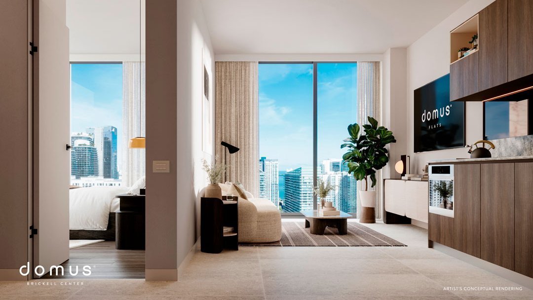 FLEXIBILIDAD URBANA, ESTILO BRICKELL En el corazón de una ciudad donde convergen innovación, cultura y estilo de vida tropical, surge Domus Brickell Center: una nueva visión de la vida urbana en Miami. Este proyecto redefine la flexibilidad con residencias completamente amuebladas y pensadas para adaptarse al ritmo dinámico de la ciudad. Ubicado en Brickell, el centro neurálgico de negocios, diseño y gastronomía, Domus combina arquitectura contemporánea, amenidades sofisticadas y acceso inmediato a todo lo que hace de Miami un destino global. Aquí, cada espacio es una invitación a vivir con libertad, conectividad y estilo. RESEÑA DEL EDIFICIO Ubicación: Brickell, Miami – a pasos del transporte público, tiendas y restaurantes. Altura: 35 pisos con 579 unidades totalmente amuebladas. Tipologías: Estudios, 1 y 2 habitaciones. Concepto: FLATS – alquileres flexibles sin restricciones. Diseño: Arquitectura de MC+G y dise